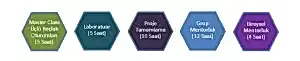 Master Class Üçlü Koçluk Oturumları: 5 saat süreli, 3 aday ile oluşturulan gruplarla gerçekleşen Master Class çalışması içinde her bir aday 1 kez Koç, 1 kez Mentor ve 1 kez Müşteri rollerini canlı olarak deneyimler.
